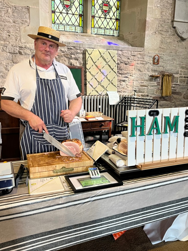 Home cooked and flavoured large hams. Sliced freshly from the ham joint on market day.