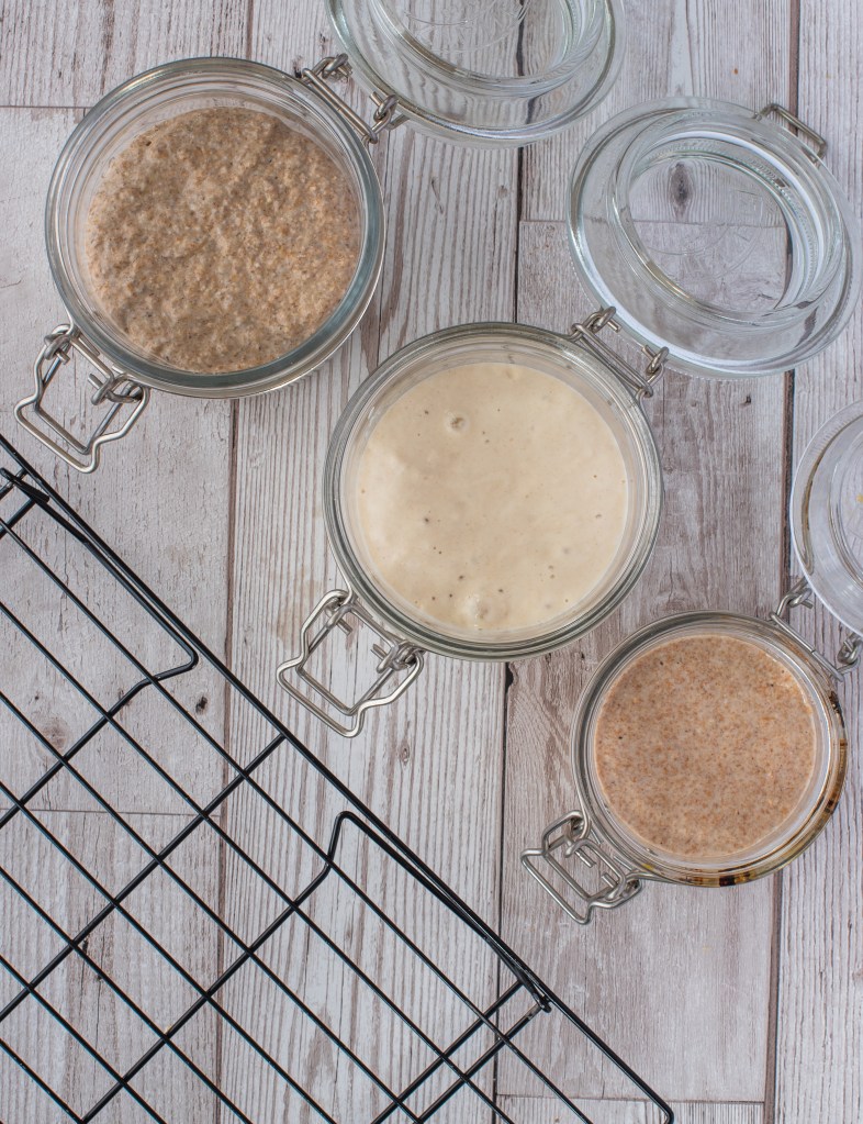 600g–900g strong bread flour of your choice: dark rye, white or wholemeal. It’s best to use one flour and stick with it. You can make more than one starter at a time if you want a different bread flour in each one.